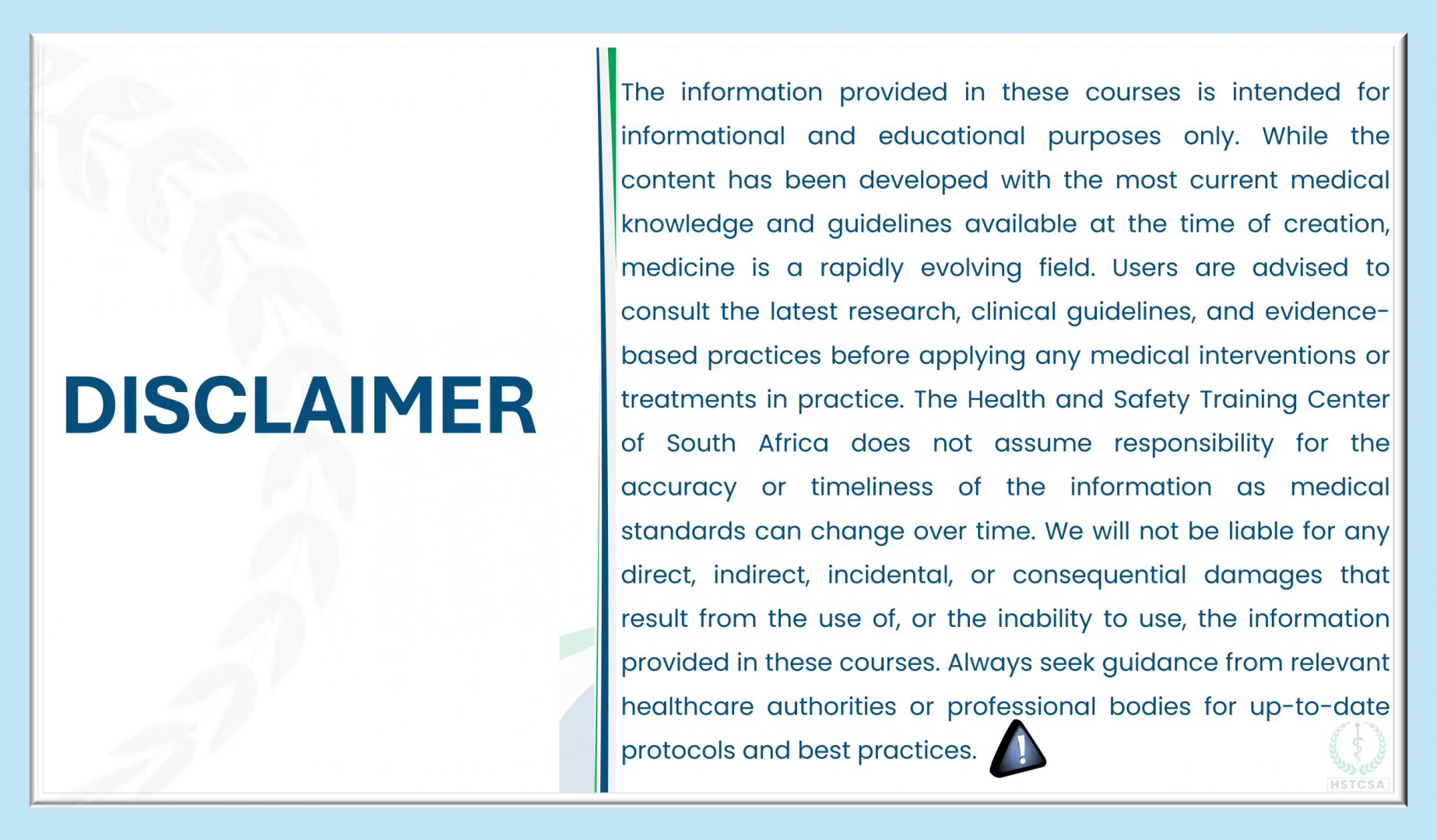 Disclaimer and Course Navigation